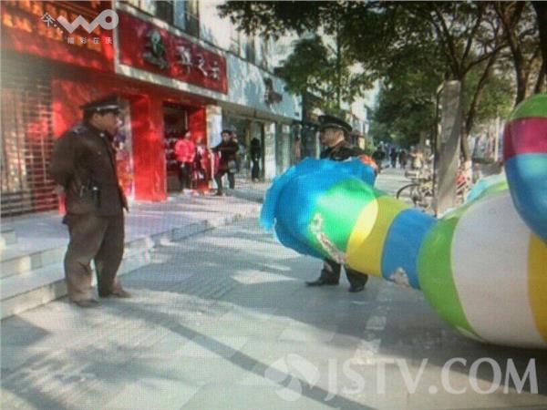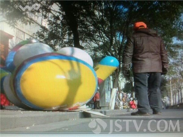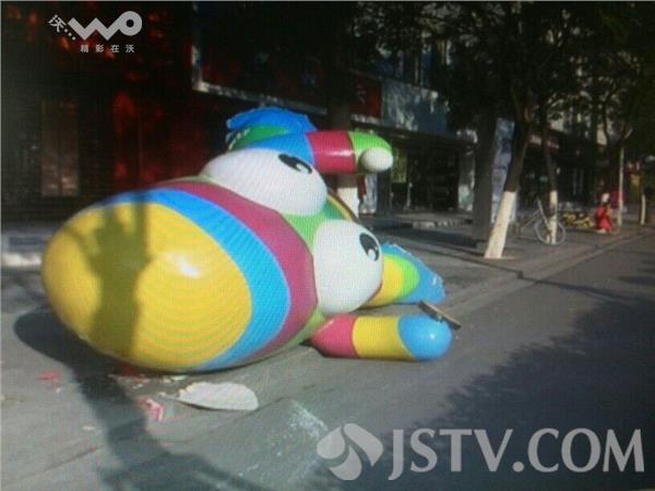 今天上午,有市民反映,在南京的中山东路和洪武北路的交叉路口的北侧,有个巨大的青奥会吉祥物砳砳,横在人行道和非机动车道之间,影响了早高峰的出行。由于这个吉祥物过于庞大,附近店家的业主也无法处理,随后通知了城管。
