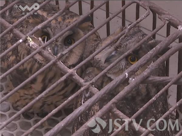 12月8日晚上,徐州潘塘派出所民警在巡逻致到潘塘高速立交附近时,看到一名男子行迹非常可疑,手里边还拎着三个口袋,然后我们就上前去询问盘查,民警在口袋里发现三只疑似猫头鹰,还有8只斑鸠。
