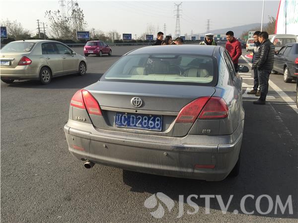 今天上午记者跟随交警在南京高速马群安检站对过往车辆进行安检,在10点半左右,一辆辽宁牌照的小汽车被沪宁高速南京公安检查站的 民警在安检中拦了下来,民警发现这个牌照的表层好像另外喷了一层漆,民警介绍说,这种情况,会造成在行驶过程中特别是违章的时候,路上的监控无法拍到车牌,因为这种表面会反光。