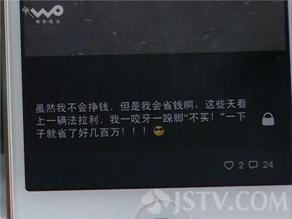 邱小姐说,大约半年前,她在网上认识了一个名叫“小飞侠”的网友,之后两人就互加了微信。小飞侠开豪车穿名牌的奢侈生活,让邱小姐这个灰姑娘羡慕不已。“看他朋友圈里发的东西 拍好的车子 拍他们家住的房子 觉得应 该是挺有钱的人,他也说过他们家是做生意的 挺有钱的 他是个富二代”邱小姐回忆。