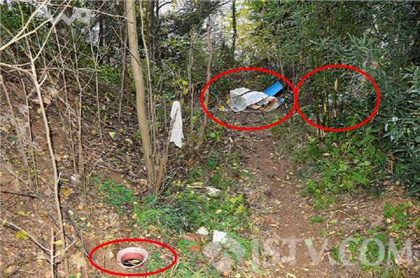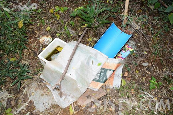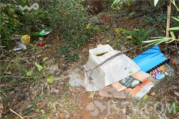 根据指引,笔者找到了该处山头。果然,在山顶下坡处,见到了游客所说的露天茅厕,所谓茅厕,也就是便池和粪坑,粪坑上还用编制袋盖着,旁边树丛中、竹林下确还散落着各种杂物垃圾 。整个山头下坡俨然成了一处藏污纳垢的场所。据了解,这些便池粪坑都由来此晨练的市民自制 而成,由于常来此处山头晨练的市民很多,为解方便之急,就有人“自制”了这种简易的露天茅厕。 周围散落的各种塑料泡沫、编织袋等杂物也都是市民用后废弃留下的。