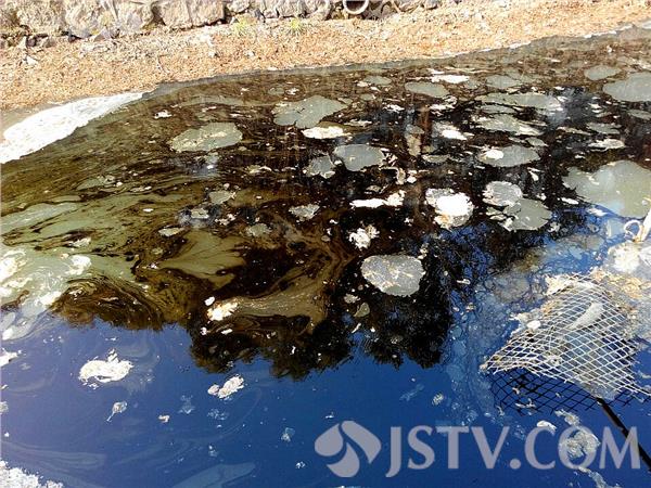 昨日,途经南京秦淮区红花街道翁家营村村委会汤家坝218号附近,沿着南北的一条水泥马路,看见西侧有一条无名水沟,水面上漂着成片油污。但在水沟边,笔者发现明显的排污口,通到小水沟,源源不断往外流,呈浑浊乳白色。水面上,还漂浮着大量的亮黑色的油污,却闻到了一股臭味,再往前走,太阳下,让人作呕。附近居民说,以前经常来河边逛,现在却不来了,太脏了。