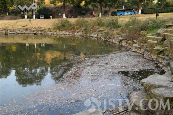 现场观察,该处水面漂浮的垃圾大多以枯叶为主,也有饮料瓶、塑料袋等少部分垃圾,显然是被顺风吹至池塘一角累积所致。如此“规模”的漂浮垃圾,显然不是短期所能堆积出来的。据了解,该处池塘为园区内最大的观赏水池,因处在园区大门口,平时隔三差五总有园内清洁工前来打扫,这次水面上这么多漂浮垃圾,已至少十多天无人清理了。观赏池边漂浮大堆垃圾,显然有碍观瞻,也有污景区形象。