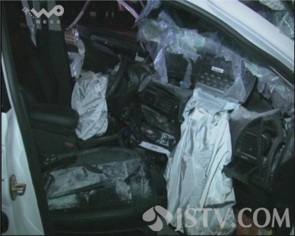 记者赶到现场时,货车和轿车的车头仍紧紧地咬在一起,摩托车倒在一旁。轿车受损非常严重,前排两个气囊均已打开。此时,轿车里的一家三口已经被解救出来,摩托车驾驶员已被送往医院治疗,而大货车的驾驶员早已不见踪影。据了解,轿车男驾驶员双手受伤,左腿骨折,女子受轻伤,小孩坐在后排受到惊吓,所幸都无生命危险。随后赶来的医护人员将伤者送到江宁区人民医院救治。