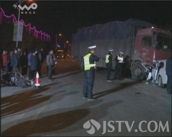 昨天下午五点半,南京江宁区老104国道土桥段,发生一起连环车祸,一辆满载货物的大货车追尾一辆同方向行驶的摩托车后,急打方向盘,又和迎面驶来的轿车相撞。事故造成摩托车驾驶员受伤,轿车上一家三口被困,而货车驾驶员却在事故发生后逃跑了。