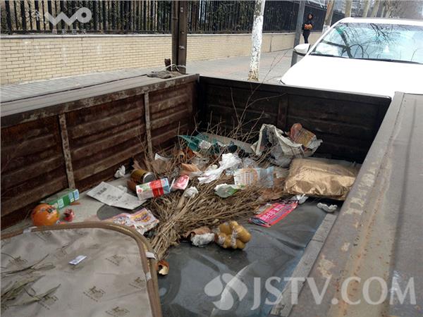 南京鼓楼区姜家园路环境监察大队门口,一辆农村使用的老式手扶拖拉机,长期停在车位上,已经一年多,不少行人把它作为垃圾箱,把生活垃圾丢在车后箱里,由于地处于闹市和小桃园风光带,严重影响南京环境卫生。