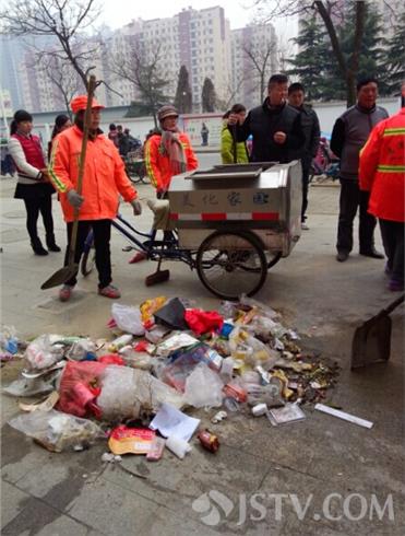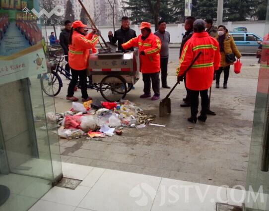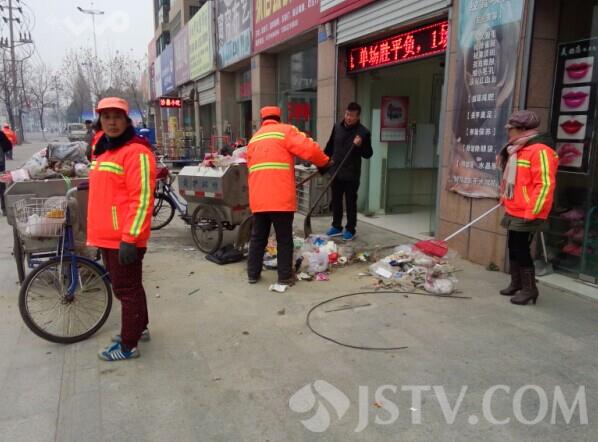 看到垃圾堆在店门前不卫生也不文明,清浦区环卫立刻组织十多名环卫女工前来伸出援手帮忙打扫,半个小时后,堆积在杨先生家门前的垃圾全部被打扫一空。