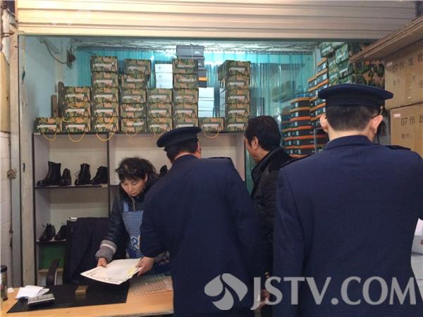 被举报的两家店都位于南京鼓楼区校门口街上,专营鞋类商品,当执法人员要求两家店的负责人拿出进货单时,二人的回答均是没有。