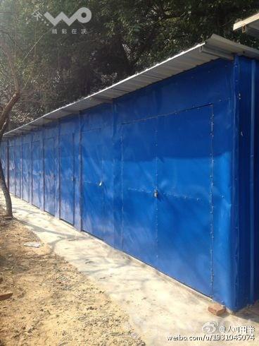 今天上午,记者来到了蓝天公寓12栋附近,小区居民楼旁已经建好了一排蓝色的铁皮棚子。这些简易车棚,共有十几个,每个车棚大小相近,长约3米,宽约2米,蓝色彩钢板建成。几位居民正在车棚内打扫,大家表示,这几间棚子是他们刚刚花钱领到的。