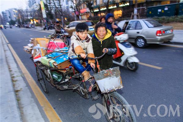 笔者在奥体中心中和路工地看到,一位60多岁大妈在集装箱卡车里卖零售商品,她的孙子也随她生活,在旁边玩耍,无忧无虑开心快乐,看到笔者拍照,很好奇,还摆起pose让我拍,可爱至极。笔者又在南京玄武湖门口看到,一位70多岁的收废品的老奶奶,带着他的孙子出来拾废品,笔者看到,老奶奶扶着,孙子骑三轮车,车后箱里装着废品,全神全神贯注,注视前方,一点也不受路边游客的影响。