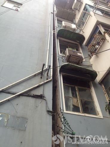 这幢倾斜的居民楼位于南京鼓楼区姜家圩52号,是一栋6层建筑。记者发现,这栋楼与隔壁的姜家圩53号住宅楼,底部有三十多公分的距离,然而到了5楼,52号楼竟然向53号楼斜靠着,两栋楼完全贴合。