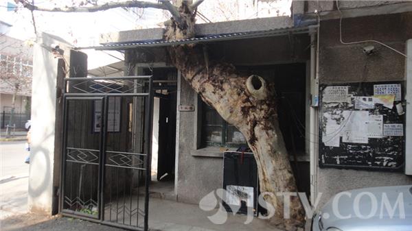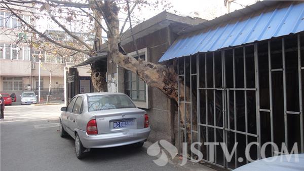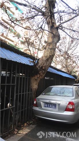 仔细观察底部树杆直径多为六、七十厘米。这些法国梧桐原本生长的好好的,因上世纪八十年代这里修建了住宅,被附近居民在这加盖了停车棚,使这些百年老树遭了殃。好端端的树木有的被砌入水泥墙里,有的被铁栏杆囚着,使它无法正常生长。路过的市民看到这一幕都感到十分痛心,希望有关部门能来救救这些百年梧桐树。