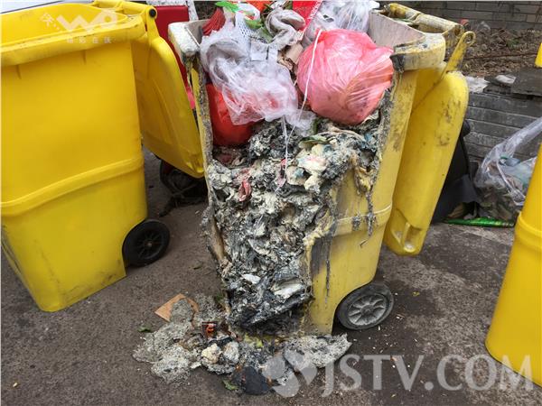 在鼓楼区的人和街记者发现,这条巷子并不是很宽,环卫部门也在这里放置了许多垃圾桶,方便附近的商户和居民倾倒垃圾,但是今天一大早,商户们过来就发现,这边有许多垃圾桶,都出现了被烧毁的痕迹,里面的垃圾也顺势散落在地上,而且一些污水也流淌到街面上面,给环境带来了比较大的影响。