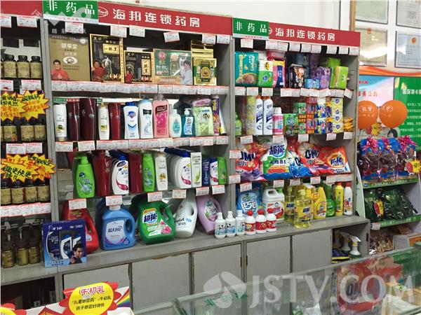 13日上午,在南京高淳区东坝镇,记者依次找到了这六家药店,每个药店的门头上都印着大大的“医保”字样。可走进这些药店,却仿佛来到了一个个小型超市,洗涤用品、化妆品、食品、小型电器,应有尽有。