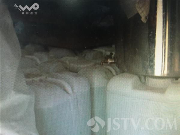 在位于宿迁市经济开发区的一处民房内,几个房间里杂乱堆放着用于灌装假酒的用品,灌装机、打码器、防伪标识,应有尽有。堂屋内的二十几箱白色塑料桶尤其引人注目,据民警介绍,这些都是造假者购买的几元一斤的劣质白酒,还没有来得及灌装,在另一个房间,有很多已经灌装好的白酒。