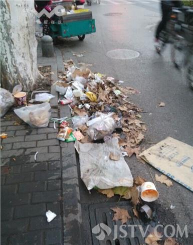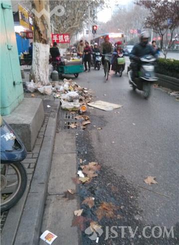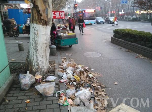 1月19日下午17:40分左右,笔者在南京市先锋广场前中央路上一慢车道看到,许多路边流动摊贩与城管队员打游击,这边城管队员刚走,那边摊贩推着三轮车就落地做买卖,由于摊贩流动随意性导致垃圾乱扔。