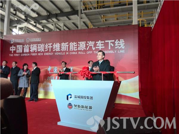 中国首辆碳纤维新能源汽车今天在盐城下线。这次下线的是奥新e25A级车,自重仅800公斤,比同类电动汽车轻近40%,每百公里耗能低于10度电,续航里程可达到400公里以上。