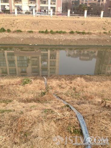 居民们表示,这条景观河直通长江,本来附近的小区居民都喜欢到河边散步,然而就在这几天,大家发现与小区一河之隔,有施工人员开始源源不断的向河内排放污水。