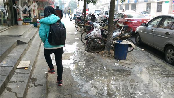 路边有一排餐饮店,服装店,从事服装业的店名为茜米娅的店主王先生,一肚子苦水,他对记者说,这种污水横流的现象已一年多时间了,他们深受其害,生意受到严重的影响。这些天温度低还好一些,夏天的时候,行人路过,恶心得很,甚至会晕过去似的。