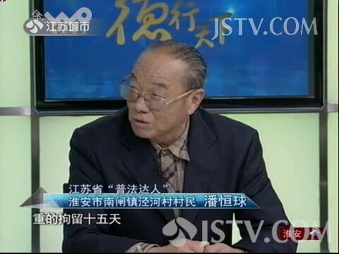 日前,江苏卫视城市频道以“全民守法,夯实法治基础”为话题,播出“德行天下”节目,邀请刚刚当选省“普法达人”的淮安市淮安区的潘恒球作为嘉宾参加节目录制,向社会推介潘恒球30多年义务开展青少年普法教育的先进事迹。