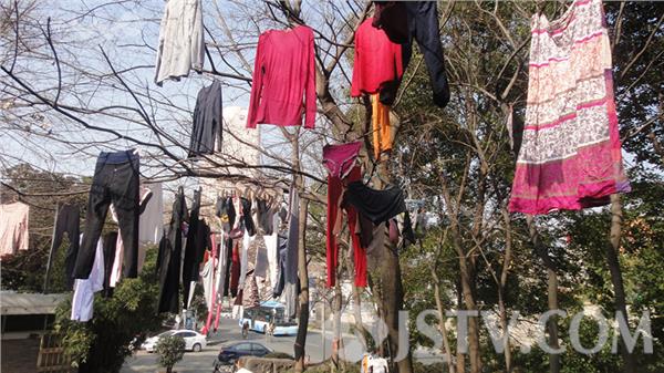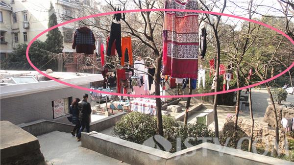 近来南京天气晴好,市民们将家里的衣物、被子拿出来在太阳底下晾晒无可厚非。但是,晾晒衣物也是要分个场合的,有的地方可以晒,有的地方就不能晾晒,否则会影响市容和城市形象。而这中山门城墙登城口属于城市窗口和景观地带,每天前来观光游玩的市民和游客众多,在登城口台阶上方到处晾晒衣物,不仅严重影响了景区观瞻,也对城市形象带来负面影响。希望有关部门能好好管一管,还这里文明整洁的环境。