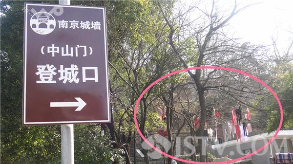 今天上午,笔者陪同外地客人到中山门城墙登城口欣赏南京风光,没想到刚到城墙登城口,便看到这道路两旁的绿化带和上城墙的台阶上方的行道树上,到处晾晒着各种花花绿绿的衣服、被子和床单。有的衣服刚出水,因无法避让,外地客人的头上、身上被滴了一身水。对此大家深感扫兴。