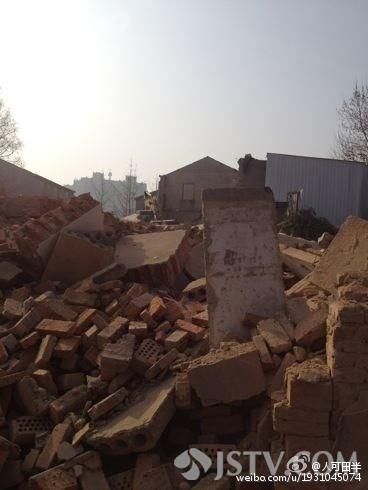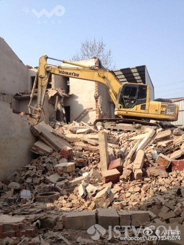 这处工地位于南京江宁区麒麟街道下甸村附近,记者赶到现场时,拆除作业仍在继续,整个工地有数百平方米。伴随着一阵阵巨响,粉尘飞扬,仿佛沙尘暴一般。离施工现场不远处就是麒麟中心小学和幼儿园。