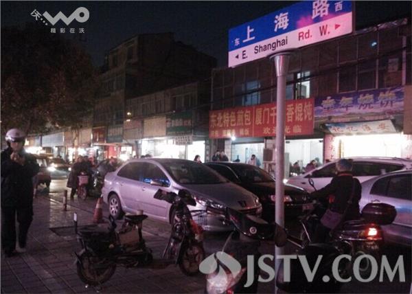 1月24日晚上6点多,淮安市上海路严重堵塞,整条路因为轿车路边违停导致数度拥堵,许多市民和车辆在狭窄的马路上挤得水泄不通。