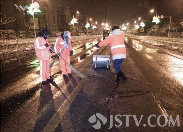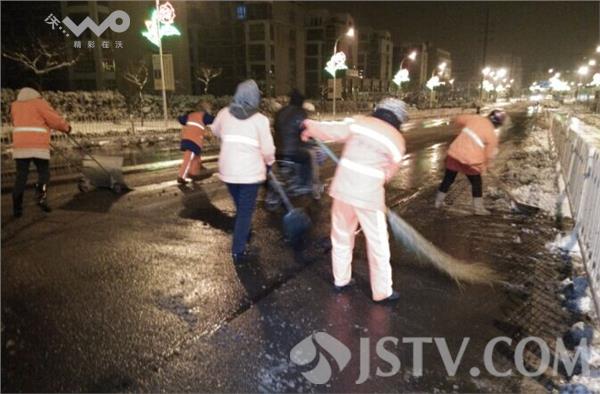 清浦环卫张大姐称,今天4点就到这里来铲雪,就是说有雪随时接受命令,我们24小时手机不关,凌晨3点钟就接到电话了。