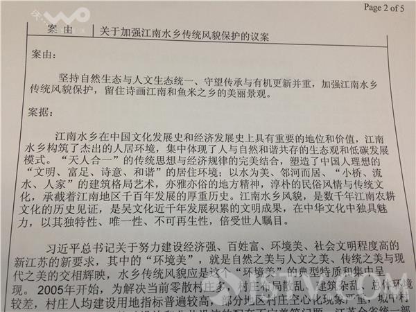 在省人大代表、苏州园林设计院院长贺凤春等11位代表提出的,加强江南水乡传统风貌保护的议案中,建议加强科学规划、增强江南水乡风貌保护系统性,留住诗画江南和鱼米之乡的美丽景观。按照“望得见山”的要求,严格保护山林资源,按照“看得见水”的要求,推进城乡水环境治理,按照“记得住乡愁”的要求,加强水乡风貌特色保护,务求江南水乡风貌保护取得实效。