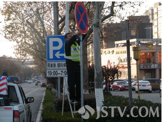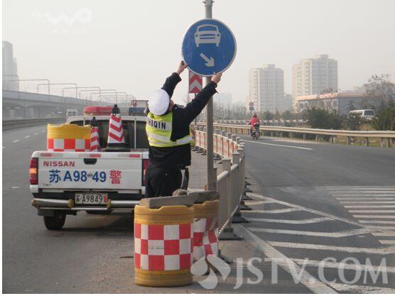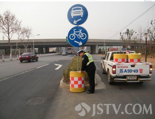 今天,进入了2015年春运阶段,为积极应对春运期间交通安全管理工作,有效预防辖区重特大交通事故的发生,南京交管局交警十大队开展道路交通设施治理工作,确保辖区交通设施完好清晰。