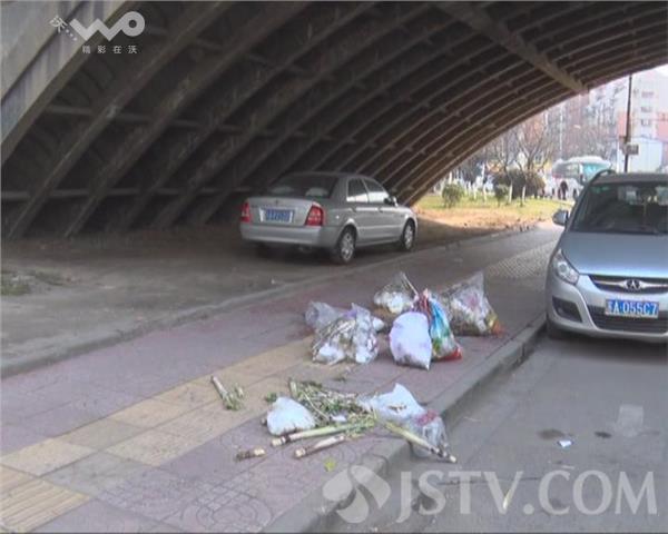 在长江大桥晓街桥孔下,步行道上出现8袋垃圾,上前仔细一看袋子里装的都是些变质水果和甘遮皮,直接影响到市民出行,保洁员只好再一次的进行清扫,像这样反复清扫每各一天就会发生,徐女士也试图找到这个偷倒垃圾的人,每次都落空。