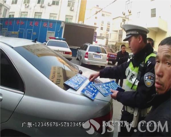 6号下午,徐州鼓楼交警大队民警在祥和路和煤港路交叉口执勤时,遇上了一辆车牌号为皖LF8300的银灰色奔驰车。开车男子在见到民警后便停在路口,遇到绿灯也不敢行驶了。这种反常情况引起了民警的怀疑。民警让男子下车,对车辆进行全面检查,果不其然,民警在车上搜出了安徽和浙江两地的3副车牌、还有一根警用甩棍。男子声称这么做是为了防止被当地人欺负。