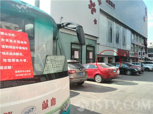 今天,记者在盐城市区浠沧商业街东入口看到,停靠在入口处的无偿献血车车门被一辆旧车堵住了。血站无奈只得贴出一张告示,要求献血者到邻近的中茵海华广场采血点献血。盐城市中心血站献血服务部副主任王雪梅说,天气寒冷献血人员锐减,血库缺血严重,不少病人只得推迟手术。现在,献血车被附近一个市门的业主堵上一个多星期了,他们很着急。