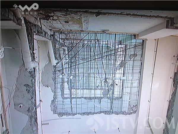崔先生就是这栋楼的住户,他告诉记者,这栋居民楼一共有两个单元,其中一个单元是普通商品房,另一个单元则被改造成了出租用的公寓。1月27号,这个公寓突然贴出公告,表示要进行水电改造、暂停营业,可是昨天下午,崔先生发现:这个改造远远超过了他的想像。“从二楼到七楼,一个房间大小的面积,都被砸通了”。