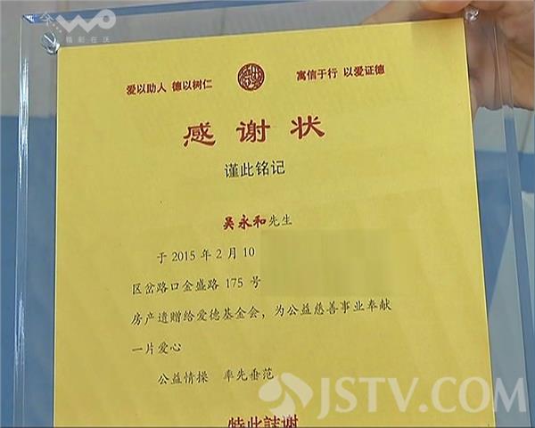 面对镜头,吴先生不愿意透露太多个人信息,他表示,自己在一所大学内从事技术以及行政相关工作,退休工资足以养老。吴先生至今单身,家中还有一个哥哥,早在两年前,他就萌生了将这处房产作为公益遗赠捐给爱德基金会的想法。他一直觉得,人生总有尽头,自身的智慧和财物都应该回报社会,这样才比较好。吴先生还表示,他的捐赠倾向于提高全民素质这一块,旨在重视国民教育这块。据南京市公证处的工作人员介绍,这也是目前为止在南京办理的第一起公益遗赠。受赠方爱德基金会表示,他们将最大效益使用吴老的遗产,如果做一个项目,房子可能就要变现;但如果适合办公,将把这处房产作为开展公益慈善的场所。