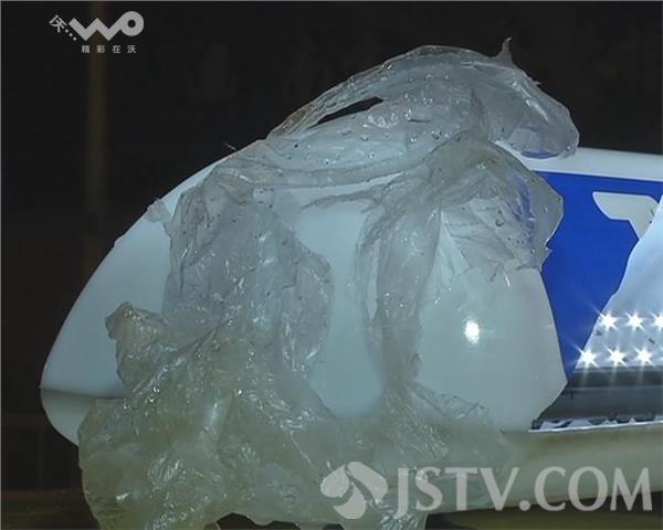 刘师傅说,当时他在东大影壁带了一名女乘客上车,刚开出去没多远,就听到车顶上一声闷响,好像有东西砸到了车子。他赶紧下车查看。只见出租车的LED顶灯已经被砸坏,车顶和前挡风玻璃上还留有水珠,一个塑料袋还挂在上面。刘师傅觉得应该是一个盛满水的塑料袋从空中坠落砸到了他的车。