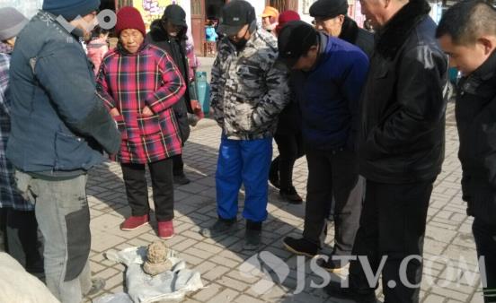 现场看到一名中年男子蹲在路边拿一个显得很旧的玉球向路人兜售。不少过往市民围观,有的拿起古董仔细观察,也有的干脆和卖古董男子讨论价钱。