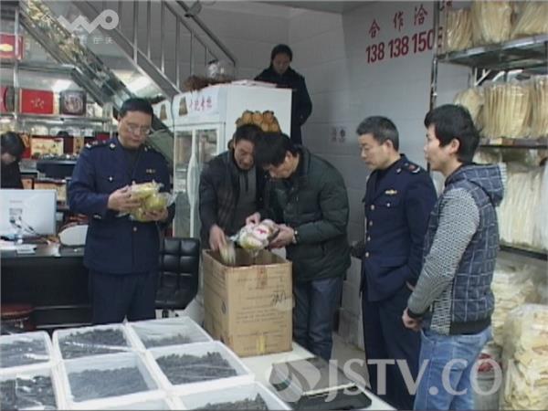 最近,有市民反映,在南京江宁区鱼翅批发市场,有一些涉嫌销售假冒鱼翅的摊贩在年关又偷偷冒头了。现在餐馆都在为年会和年夜饭备货,象鱼翅这样的高档食材卖得很快,整个市场几乎都处于缺货状态。被商家推荐的是一种“合成淀粉丝”外观确实和鱼翅很像,难辨真假。而在另一家摊点的销售人员也有“掺假”高招,他说要想保证口感,鱼翅可以真假混用。接到举报后,江宁区市场监督管理局的执法人员赶到现场,当场进行了查处。闻讯赶到的市场管理人员表示,春节期间是鱼翅销售旺季,他们对于“假鱼翅“一直在严查,可能有个别商家偷偷在卖,他们将发现一起查处一起。执法人员表示,在年夜饭和年底聚餐活动中,大家关注团圆,对菜品本身不会太注意。有些人即使能吃出来也不便挑明,这就会给一些不法商家有可乘之机。在此我们也建议您,过年聚会不必过于追求高档次,像鱼翅这种产品本身并没有太多的营养,也与保护野生动物的呼吁相违背。过年聚餐,团团圆圆、和和美美比什么都重要。