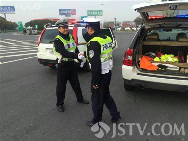 下午3:39分,盐城市交警支队高速三大队民警陈永林、杨星在宁靖盐高速公路老圩服务区等到了泰州交警的警车,把夏先生又接上盐城的警车,向建湖方向出发。