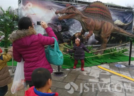 2月21日上午10时,在淮安市清河新区举行了一场侏罗纪恐龙展,据参展方透露,此次参展不仅展出3具距今1.9亿至8000万年前的恐龙化石和模型骨架、50多具栩栩如生仿真恐龙,而且还有30件与恐龙同时代的其他动植物化石、44块生命起源演化和珍惜环境的图文展板。