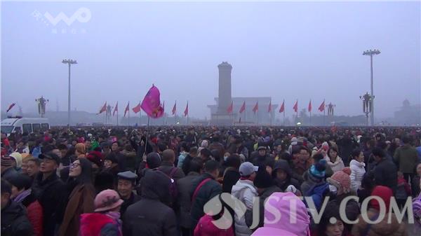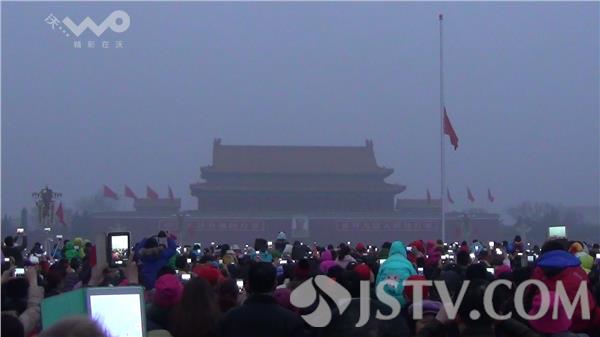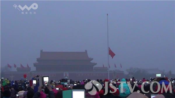 7时,义勇军进行曲奏响,五星红旗冉冉升起,站在广场上人们眼中闪着激动的泪花。在寒风中,沉静了一夜的天安门广场上沸腾了。