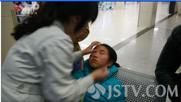 今天下午5点半,离下班时间不远了,记者在江苏省中医院看到,一楼大厅里,不少中小学生还在检查眼睛。大厅里的两排座椅上,坐满了中小学生。