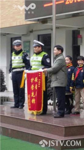 上午8:00,交接仪式准时开始,在全校师生的注目下,孙巍和现任护学岗负责人、四中队副中队长王明源共同完成了升国旗仪式。紧接着,北京东路小学校长孙双进将一面绣有“安全天使,护学先锋”的锦旗亲手递到孙巍手中,动情地说,“孙警官,这么多年,您辛苦了!我代表学校一千多名学生向您表示感谢!”瞬间,校园内掌声如潮,学生们个个流露出依依不舍的表情。孙巍两眼含着泪,激动地说,“谢谢大家这么多年对我的支持和认可,我虽然离开一大队了,心中有太多不舍,但我们的岗还在,我们的服务还会延续,今天我把接力棒交到王明源警官手中,希望大家能像支持我一样支持他,我相信他会做的比我更好!”最后,王明源向大家作了自我介绍,表示将大力弘扬北小护学岗的优良传统,向孙巍同志学习,带头践行护学岗“八个一”宣言,坚持为学校服务,为保畅尽力,为学生们做好事,办实事,凝聚力量,塑造品牌,为创造一个安全有序畅通的文明交通环境,引领社会文明风尚做出积极的贡献!