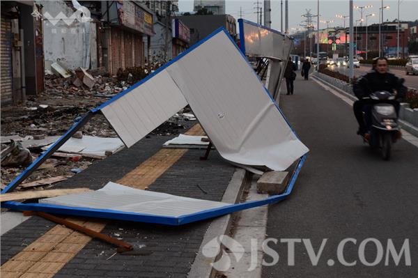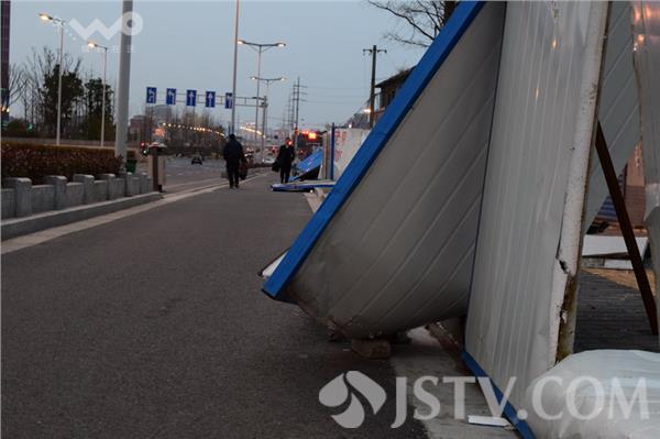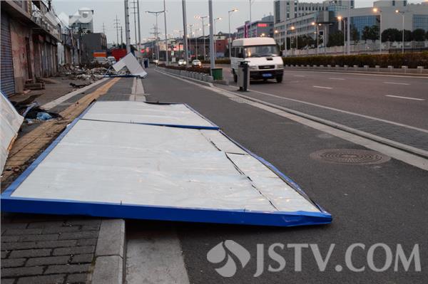 现场观察,原来竖立在人行道上的围挡已倒下5、6块,或大幅倾向慢车道,或直接倒下占据路面,行人尤其车辆经过这里总要小心避让才行,其中一块倒伏在慢车道上的围挡,因为已占据了近3/4的路面而遭到了来往车辆的多次碾压已经变形。据附近市民称,该处围挡刚倒伏不久,怀疑围挡间因连接松动,加之近期风大,一块倒伏后带动了其它多块围挡倒伏所致。据悉,该处围挡里面是一处尚未拆迁完毕的工地,年后至今还未开工。