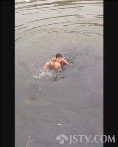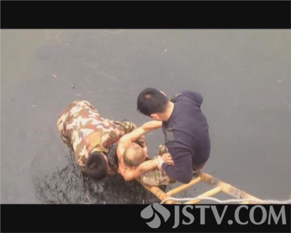 昨天下午3点多,连云港市灌云县一名醉酒男子从河边经过,失足掉到冰冷的河中,男子光着上身,只露出头在水面上。行人发现后,立即报了警,一位市民用手机拍下了紧张的救援过程。