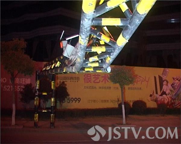 3月10日晚上六点半左右,武夷花园西门口正在值班的门卫王师傅突然听到轰的一声巨响,跑出来一看,原来小区门口滨河路一限高栏被一辆货车撞断。