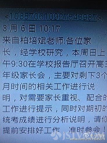 对于这种说法,不少家长不能认同。有家长表示,本届高三上学期也实施了间周补课,学生另外交了专门的补课费用。而且从短信字眼可以看出,是“奖励基金”。对此,江宁区教育局相关负责人表示,他们并不提倡学校周末补课。学校应与家长加强沟通,消除误解,还要立即通知家委会停止这种募集资金的行为。