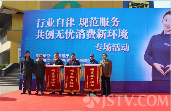 活动中,省家电维修协会向全省家电服务维修行业所有企业和从业人员发出“行业自律 规范服务—共创无忧消费新环境”的倡议,并公布首批获得“江苏省家用电器服务维修行业企业资质等级评定”的企业名单。省商务厅、省消协以及家电维修协会给首批获得特级资质的五星、苏宁、汇银、明珠、志佳等服务维修企业,以及获得一级资质的汇通达、泰吉、中家维、水联、计华、纽卡、莱斯利、凯利等服务维修企业代表颁发了铜牌、证书及二维码上门证,通过以上各主题活动共同推动行业自律、规范服务。