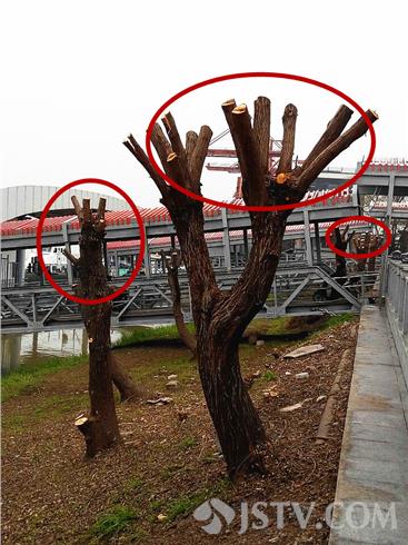 望着一棵棵没了一点枝杈的大树,市民质疑:这到底是修树还是毁树?修剪树木采用“截头”的方式是不合理的,对树木的生长有危害性。树木的修剪只需去掉遮光或枯死的部分就行,起码也要留下大的主要枝杈和一部分树冠。因为这种“截头”的损伤性修剪,会让树变得衰弱,再发枝条会很困难。从专业的角度上讲不允许这样过度修剪的。随后采访南京绿评员孟兆祥:任何树木都不要“砍头”,砍头影响树木生长,树心会腐烂,失去树皮的部分等于给虫开了方便之门。徐福庚